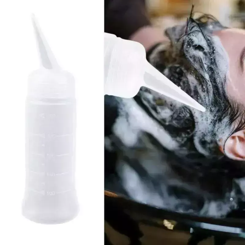 Su cuerpo tiene marcas de medición en mililitros para facilitar la dosificación precisa del producto. El diseño ergonómico permite un manejo cómodo y controlado durante la aplicación de tintura en el cabello.